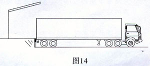 這種設(shè)計中,裝卸貨平臺和貨車都處于建筑物外(圖14)。開放式平臺因受天氣因素影響大,故多用在氣候溫和地區(qū)的普通貨物的倉儲,通常在平臺上方加蓋雨蓬或在平臺周圍加垂簾,用以保證雨天正常作業(yè)。