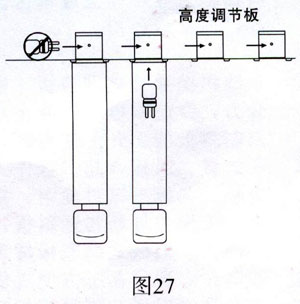 這一寬度(或更寬的通道)還可使叉車不需在平臺(tái)高度調(diào)節(jié)板上轉(zhuǎn)彎或橫越;而正向直線通過調(diào)節(jié)板,這樣可降低對(duì)調(diào)節(jié)板產(chǎn)生的負(fù)荷,提高安全性(圖26),也不需采取限制措施,限制叉車橫越平臺(tái)高度調(diào)節(jié)板,橫越調(diào)節(jié)板的叉車/搬運(yùn)工具會(huì)對(duì)從貨車上退出的叉車產(chǎn)生極大危險(xiǎn)(圖27)。