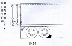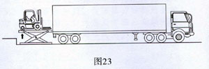 如使用平臺的貨車經(jīng)常有車廂底板特高或特低,則需考慮設(shè)計(jì)專用泊車位、特殊車道和設(shè)備。典型的解決辦法是設(shè)置“液壓升降平臺”(圖23)。